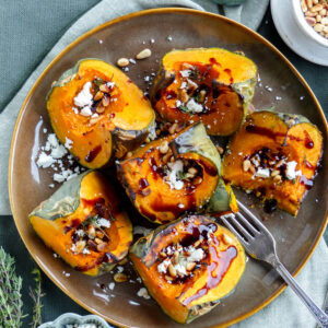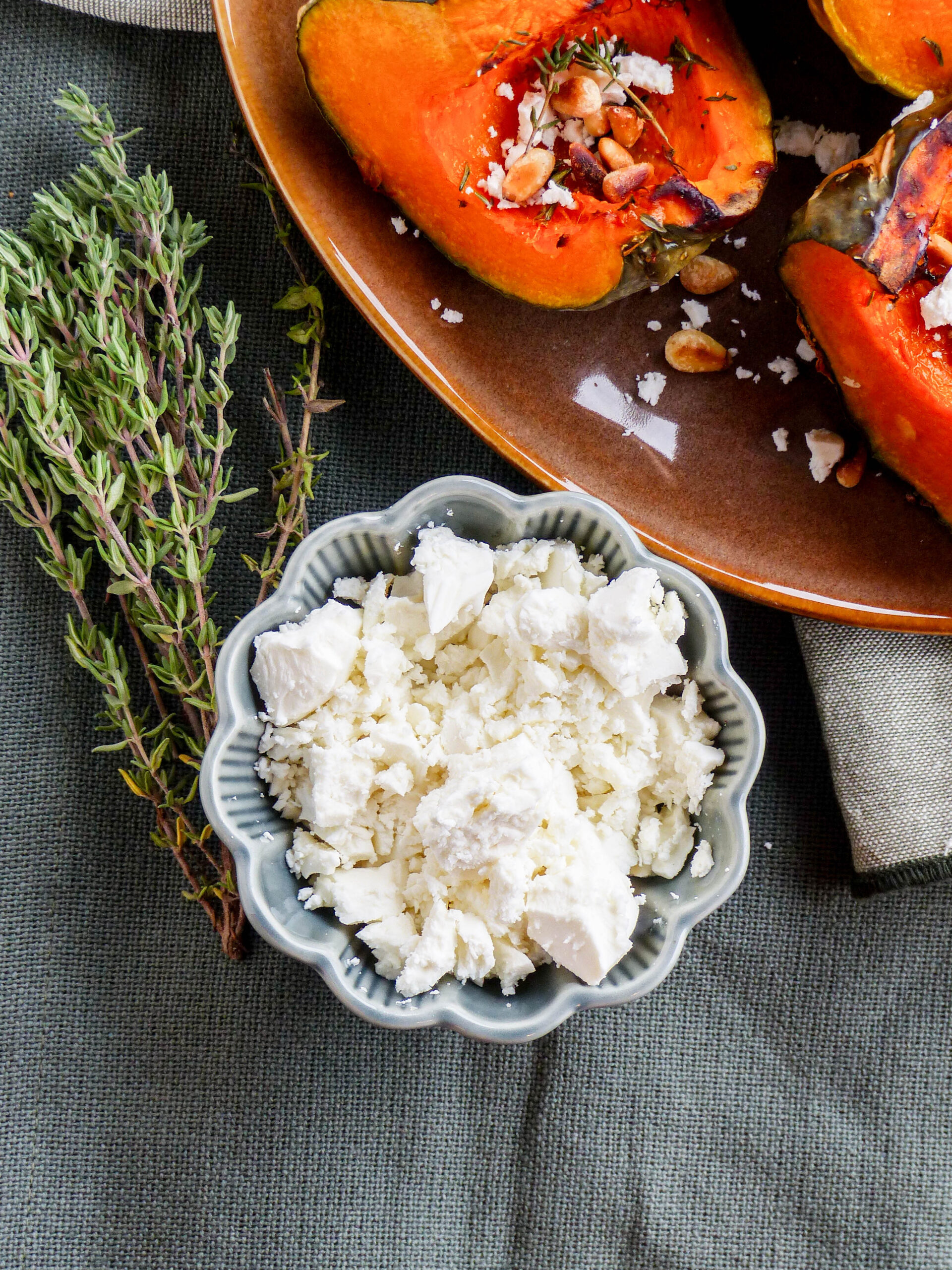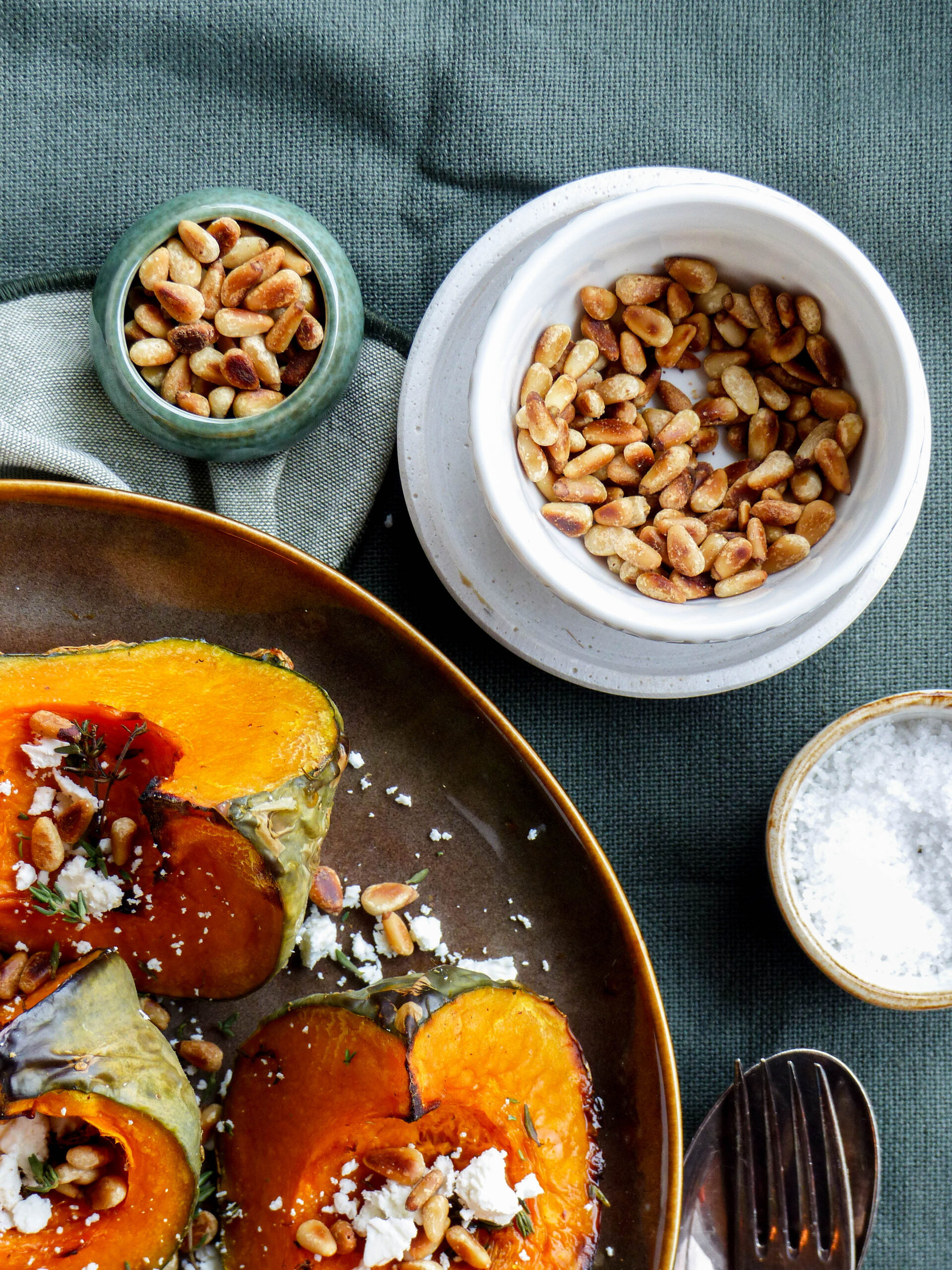 Gerösteter Kürbis mit Ahornsirup, Feta und Pinienkerne - Anna Lee EATS.